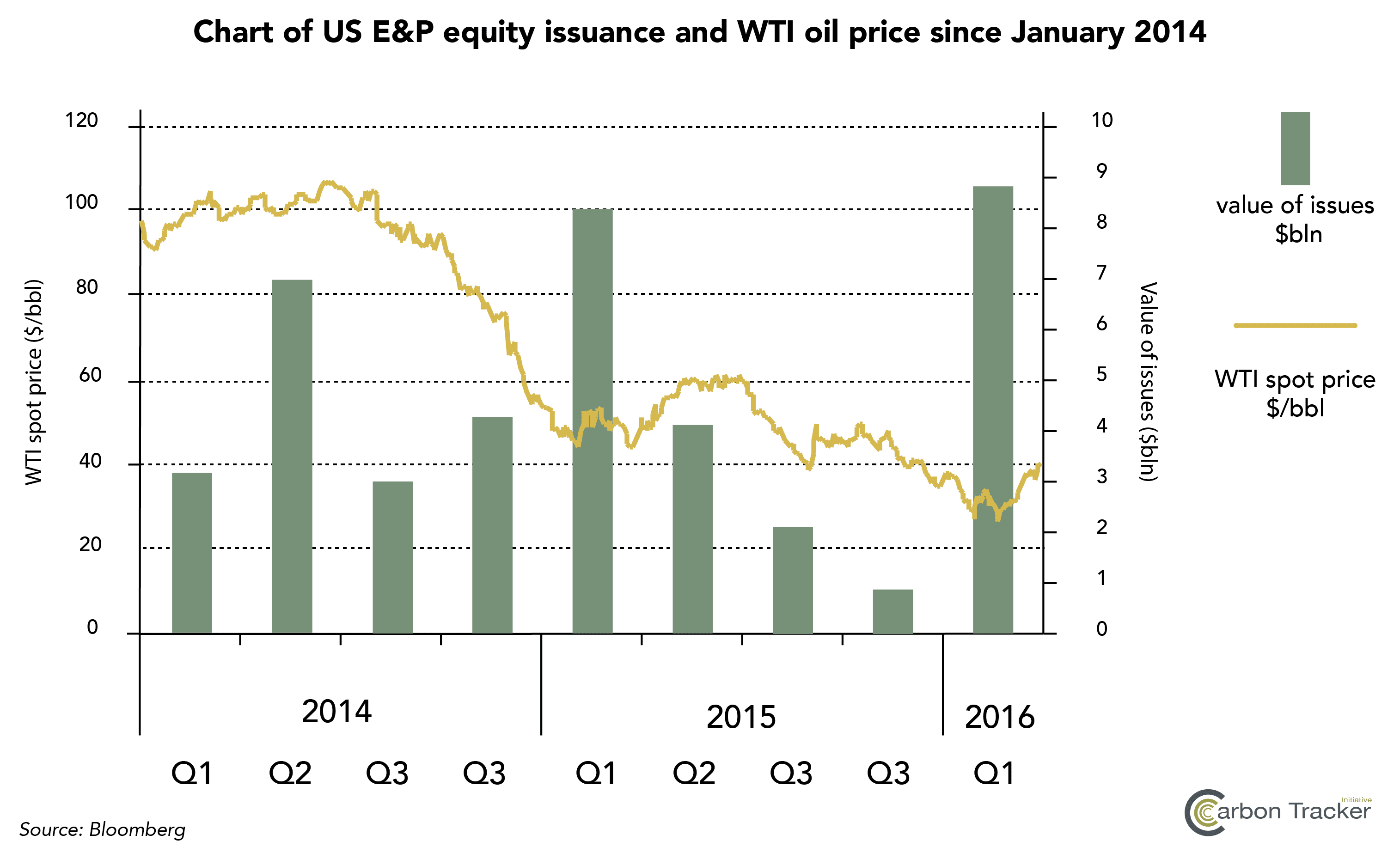Despite the recent oil price collapse, the analysis shows that equity investors appear to be throwing caution to the wind, piling back into the sector with some $8.9 billion of equity issued already in the first quarter of this year – a more than 10-fold increase on the final three months of 2015, and the highest quarterly level since 2011 at least.