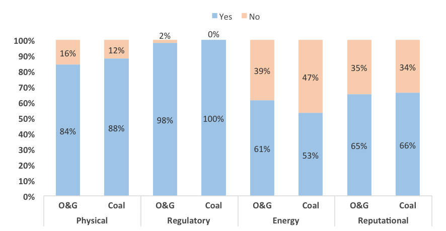 This report analyses a sample of 81 coal, oil and gas companies. 86% of companies consider climate change to pose physical risks, while 99% of the sample deem climate-related regulation to be a risk.…But perpetuate uncertainty with a lack of implementation