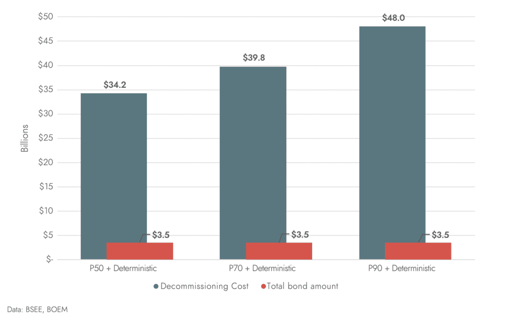 - At best, only 10% of estimated decommissioning costs for the OCS are secured by bonds (Figure 1).