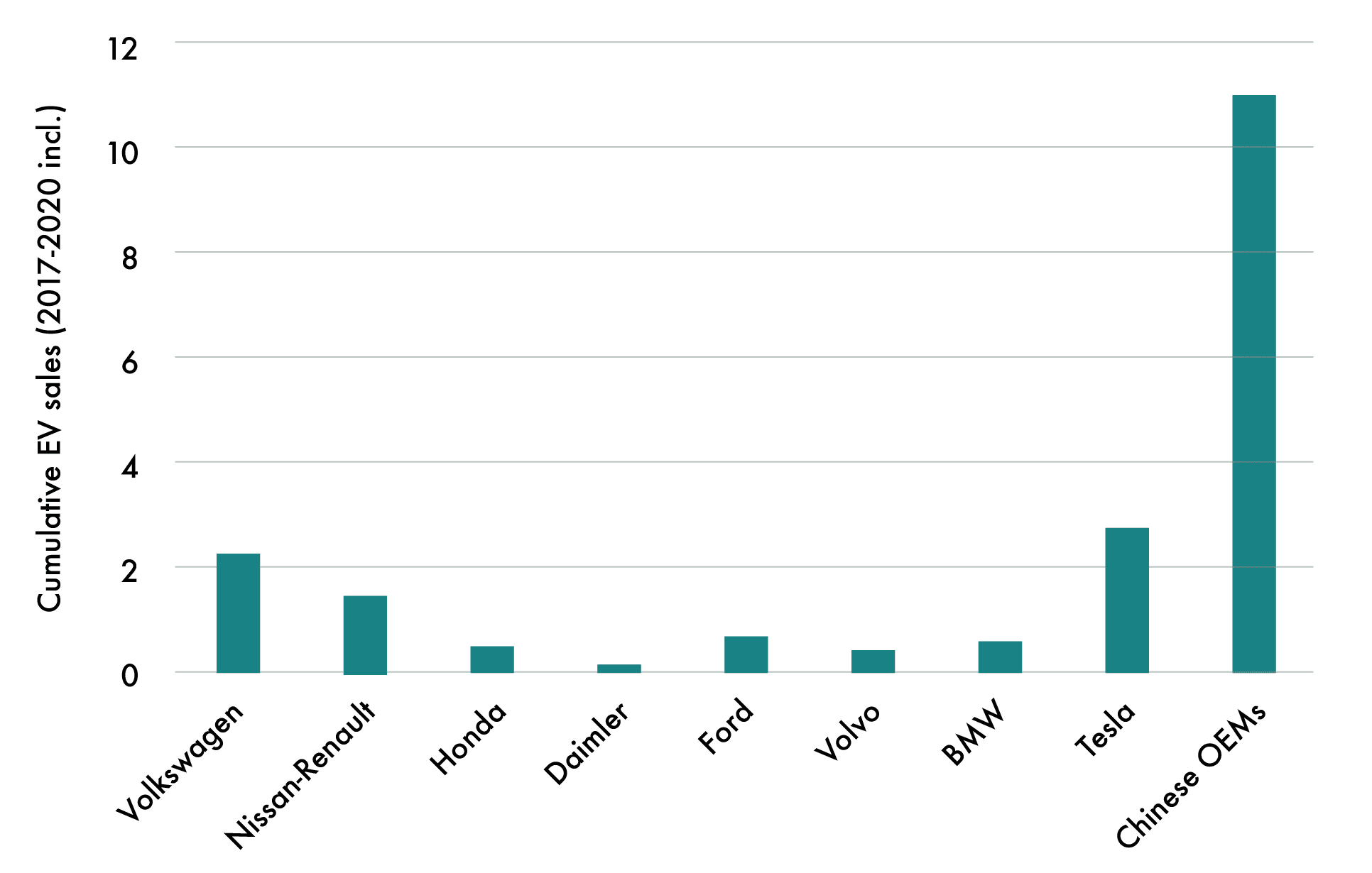 Figure 1: Cumulative EV sales implied by OEM announcements (2017-2020 inclusive)[2]