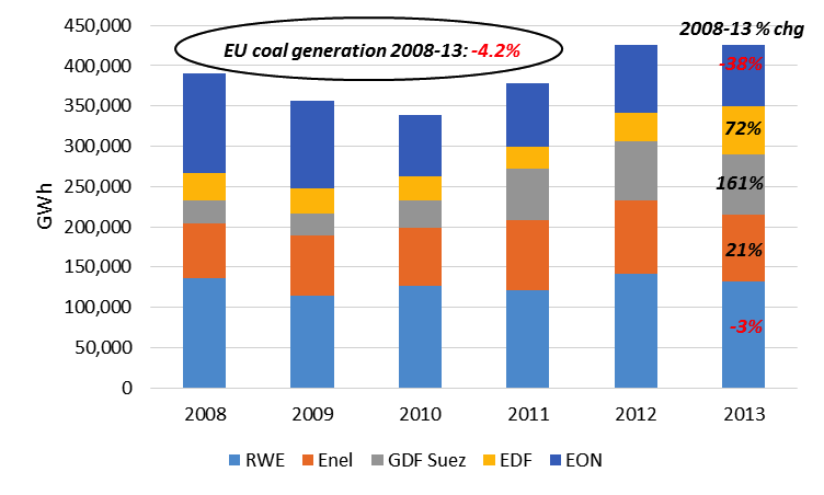 In this report we analyse the EU’s largest 5 power generators: Électricité de France (EDF), GDF Suez, Enel, E.ON and RWE, who collectively represent nearly 60% of Europe’s electricity generation, during the period between 2008 and 2013 to help understand: