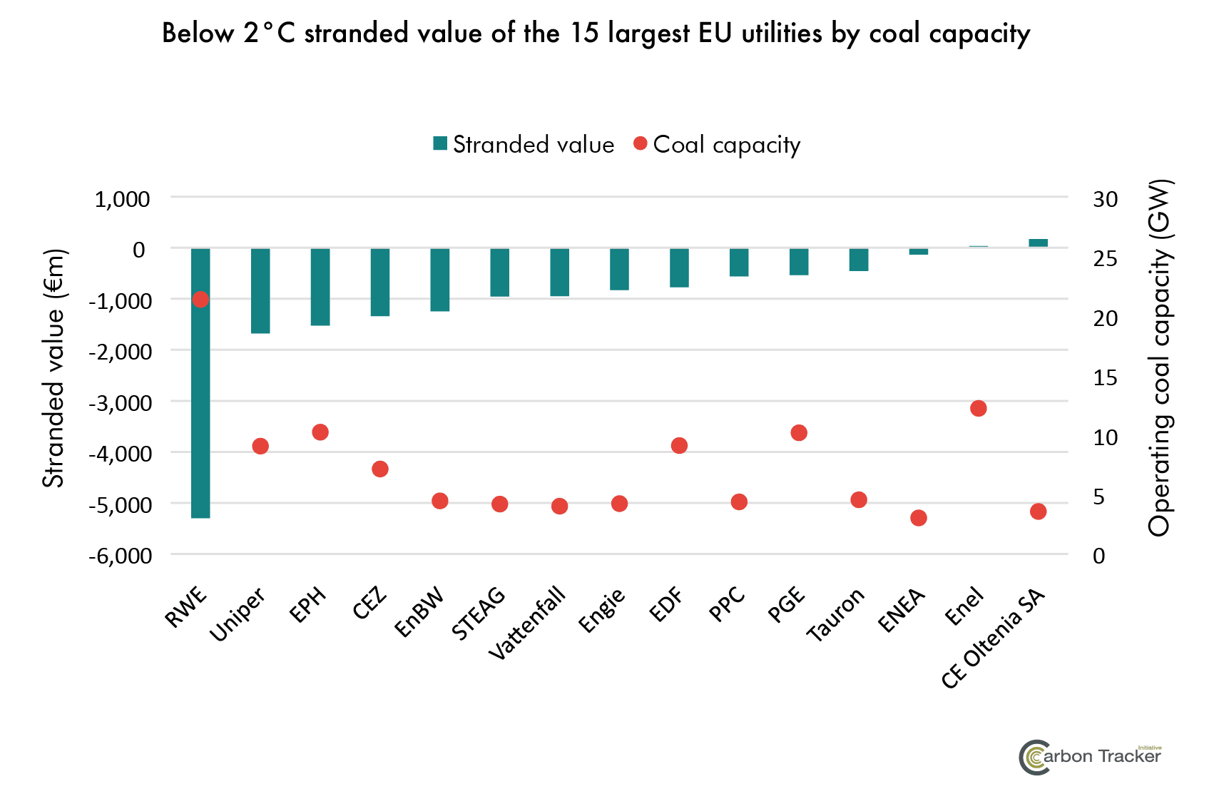 Utilities with exposure to coal power in the EU are at a strategic crossroads: continue to invest in coal and hope governments will allow rent-seeking in the form of capacity and retirement payments, or divest and prepare for a low carbon future. The recent announcement of more stringent air pollution limits and reforms to the EU emissions trading system highlight the risk in a pro-coal strategy. Moreover, low cost renewable energy, battery storage and demand response are energy sector mega trends which will change power systems in Europe and throughout the world. Those utilities that expect to run their coal units longer than evidence suggests are putting their assets on a collision course with these mega trends. Investors should adjust the valuation ascribed to coal generation assets held by utilities. This will involve using an asset-level model which provides a 2030 retirement schedule by dynamically determining which units close when. Utilities should acknowledge and prepare for coal to be phased-out by 2030 due to combination of policy commitments, technological progress and business model changes. Moreover, utilities should prepare for the reality that compensation may not get paid for early closure. The Netherlands' phase-out is a case in point: by incorporating a carbon price, the government has avoided paying compensation to asset owners