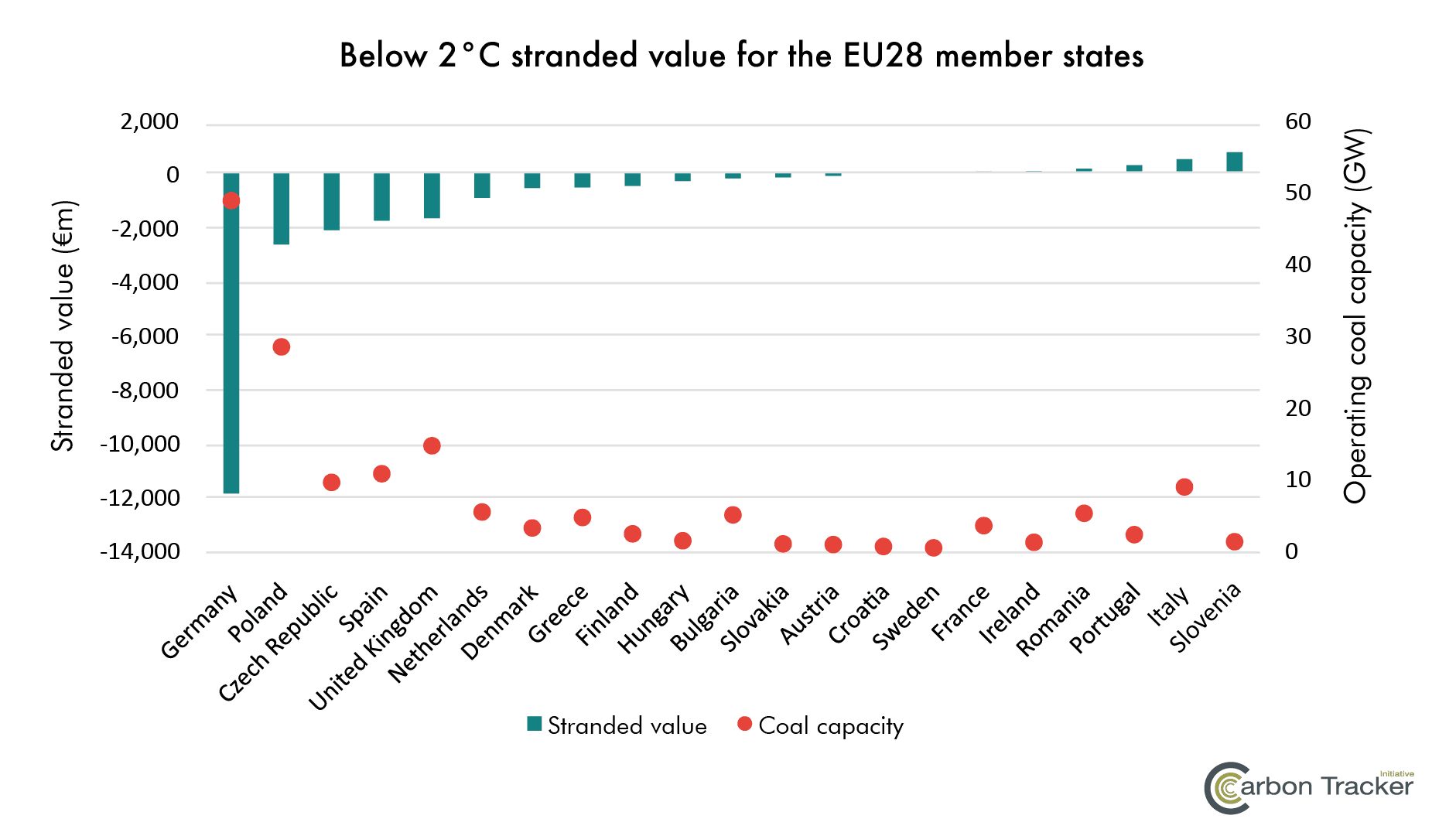 Below 2°C scenario analysis – the EU could avoid €22bn in losses by phasing out coal in line with the Paris Agreement